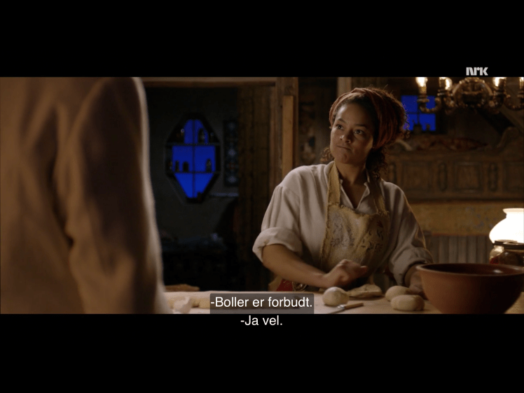 Altså, i mitt hjem så vi Snøfall på NRK hver dag i desember til og med den 24. Enkelte dager ble tidspunktet litt forskjøvet av ulike aktiviteter som ikke i like stor grad kunne utsettes. Likevel fikk vi sett alle episodene, og en del av narrativet som skapte litt ekstra engasjement, latter og diskusjon var Winthers bolleforbud! Det resulterte i heiarop og klapping da Hjertrud (glimrende spilt av Iselin Shumba) slo hånda i bollen og utbrøt at “nå er det knekkebrød!”, i protest mot det uforståelige, maktgale forbudet den sosialt isolerte Winter hadde pålagt mot, ja, nettopp, boller.