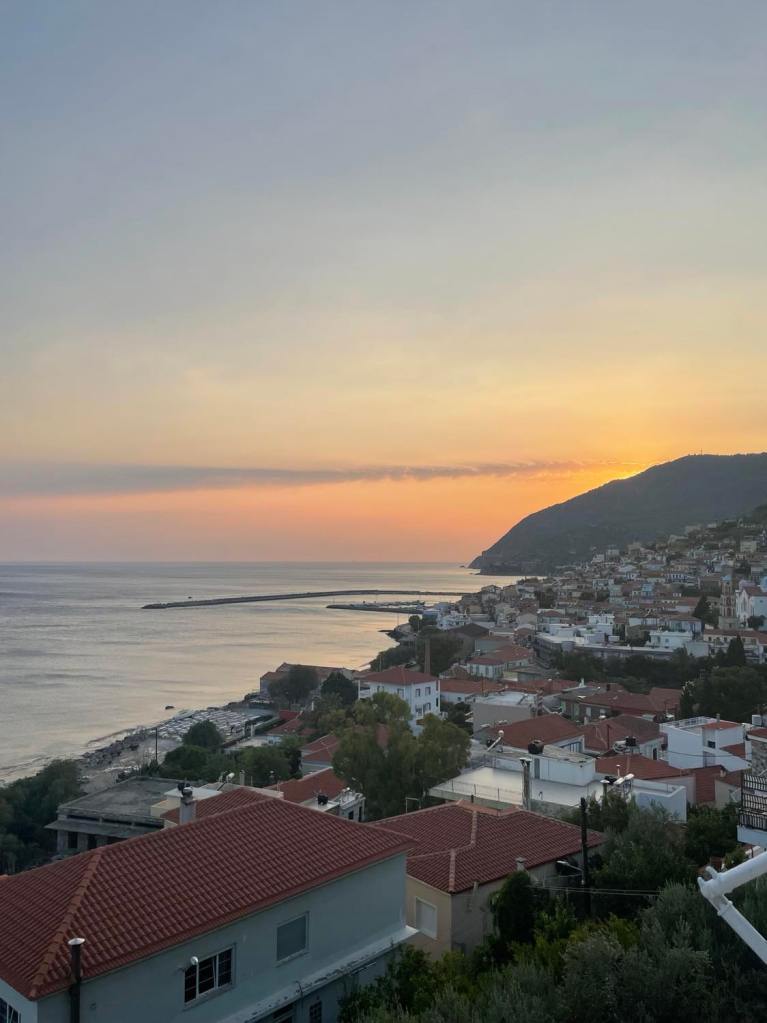 However, in comparison to Lesvos, which is the island where I spend my vacations, Santorini is one of located more to the southwest, among the cyclades, Skopelos is located to the west of Lesvos and closer to the greek mainland. Lesvos is very close to Turkey and a large island known for its many olive trees, olive oil-and ouzo production, and the colour palette is, as mentioned much more varied and saturated. Brights and pastels, and the cuisine is traditional greek, but you will also find food a bit more inspired by eastern and persian culture, perhaps due to the geograpnhical location close to Turkey.